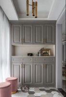 案例详情 这套轻奢美式风格的三居,设计师运用女主人喜欢的粉色与灰色调,打造出一个气质优雅的时尚美家,高级感十足。空间功能规划十分清晰,设计与实用相结合,让空间富有雅致;配色上,将绿色、橘色与之搭配,沉...