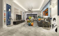 本案例遵循美式对称的方式展开设计,大胆运用深蓝色和橘色的对比色,让空间带有强烈的视觉效果。新理念的色彩搭配给予空间活力。彰显客户的高端品味。丰富的材质搭配和高级灰的代入感,让人置身于时尚前沿。 项...