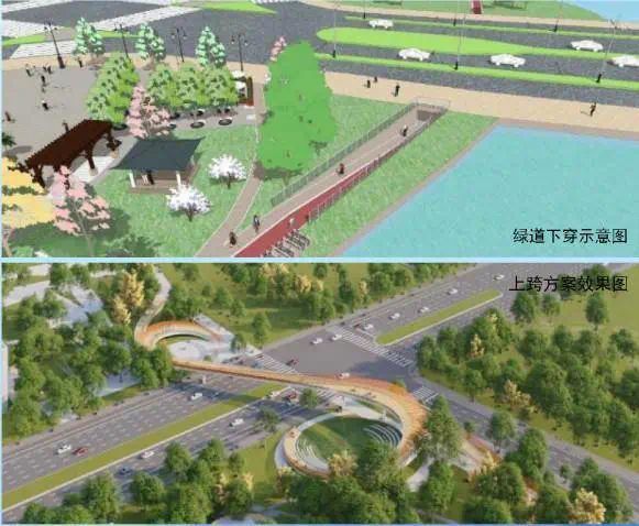 此外,连续绿道贯通,有些采取绿道上跨市政道路,采用生态桥上跨连接断点,或者选择合适路线绕行连接,步行桥桥底面距离所跨地面的高度不得低于 5 米。还可以采取绿道下穿的模式,按照规划,下穿现状地平面约 1-2 米,绿道底面距所穿道路的净高不得低于 3.5 米。