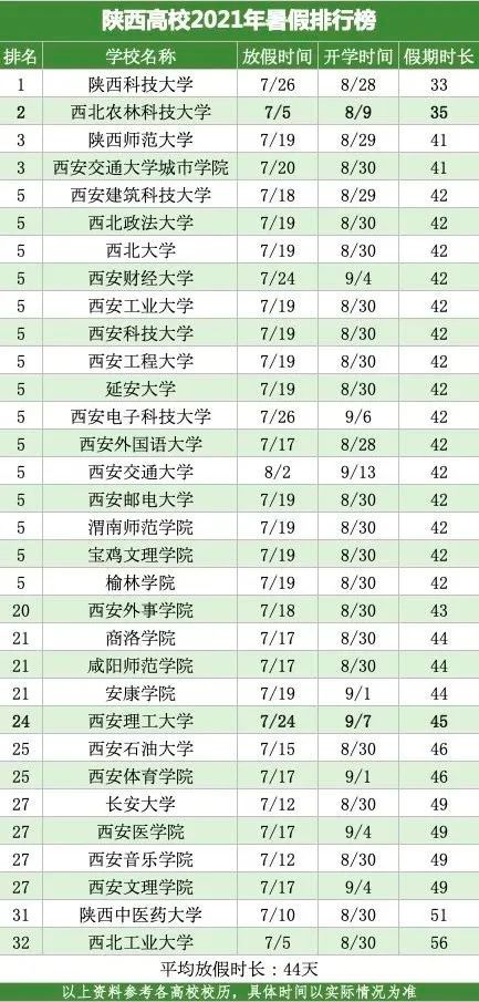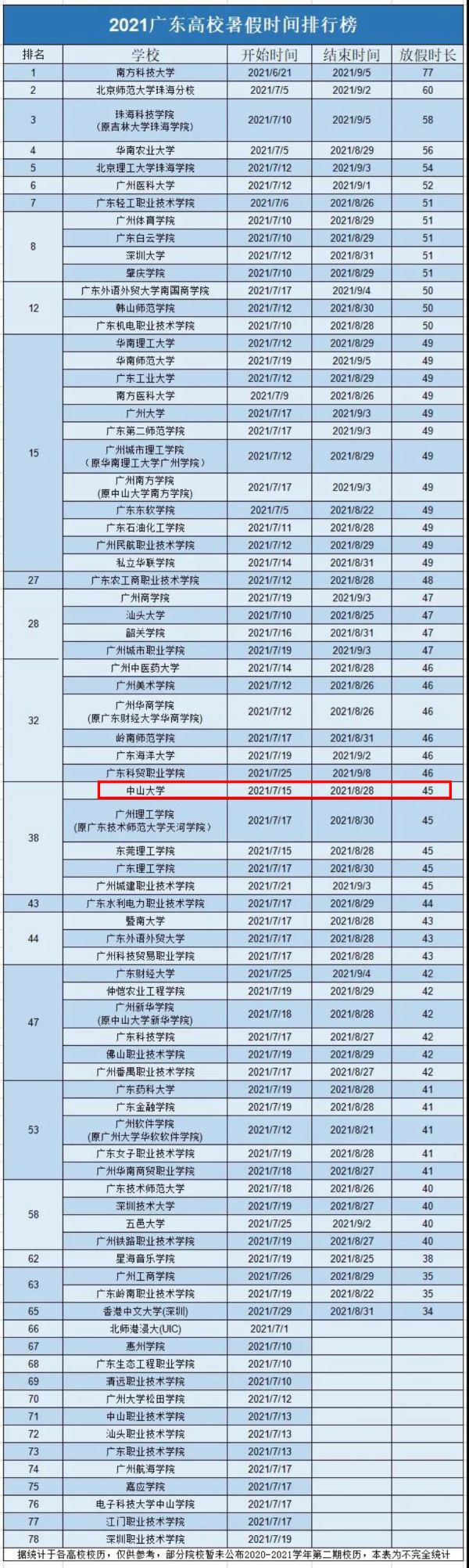 1.表格数据统计于各高校校历,仅供参考,如有时间变动当以学校通知为准;