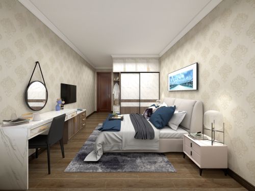 卧室选用椰白色皮革与装饰床头柜,简约的造型结合高级皮革质感,仿佛身处马尔代夫,感受白云细沙,可以悠闲自在地肆意发呆。