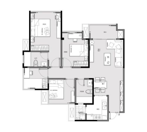 最优布局:客餐厅L型沙发,节省空间还能葛优躺;主卧布局,空间足够,电视柜梳妆台双床头柜通通满足;次卧布置双床头柜、梳妆台靠窗。
