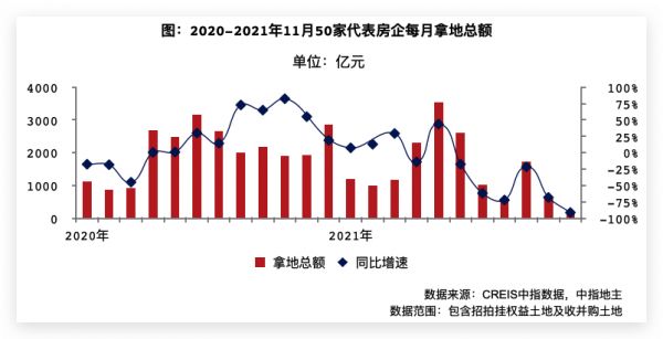 拿地累计总额同比下降17.7%代表企业11月拿地总额创今年新低