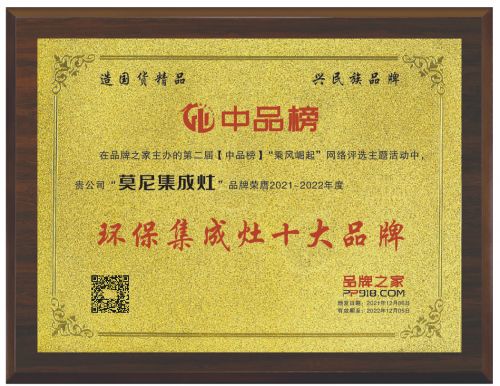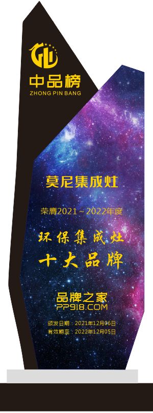 近日,由行业知名媒体“品牌之家”主办,以“造国货精品,兴民族品牌”为主题的“中品榜”行业评选活动落下帷幕,“2021年环保集成灶十大品牌榜单”正式公布,十家集成灶实力企业凭借强大的环保实力成功从众多品牌中脱颖而出,斩获“2021年度环保集成灶十大品牌”殊荣,莫尼作为行业高端品牌,自然榜上有名!