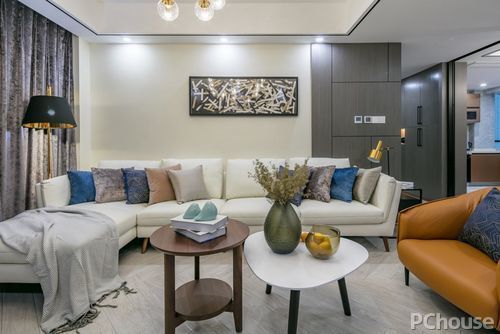 客厅背景墙挂上一副现代艺术感画作,给整个空间提高了格调,填满空间氛围显得更为整体了。