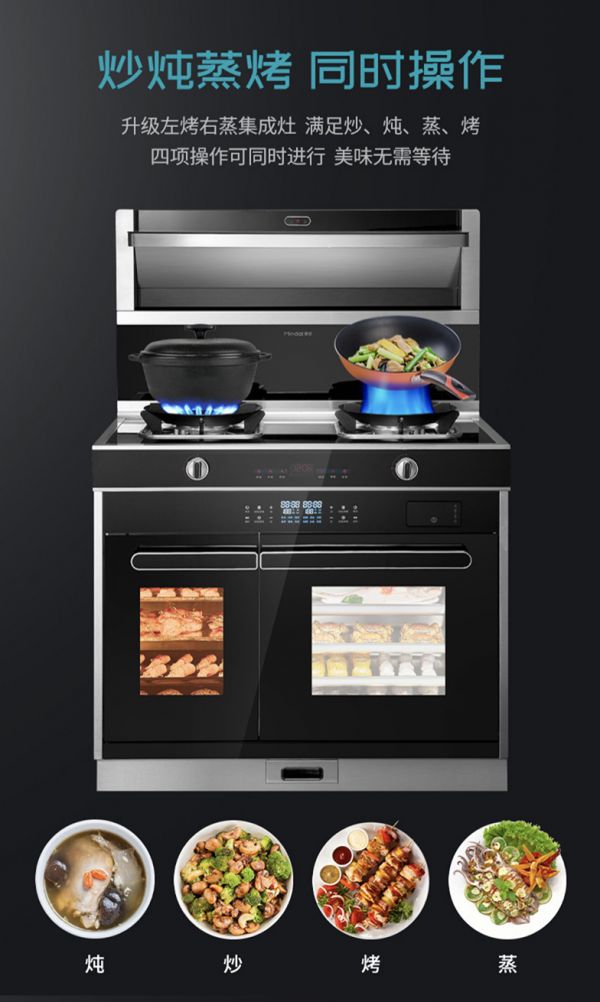 美多语音分蒸烤集成灶除了搭载强劲18m³/min持久吸力、5.0KW大火力之外,更是尝试各方面做产品亮点的有效提升。不会做菜,不知道做什么菜,这个简单的问题往往难倒了许多用户。当你体验过美多语音分蒸烤集成灶,这一切似乎就变得不再是难事。内置100+智能菜谱自动烹饪,左蒸右烤,既蒸得过瘾,还烤得漂亮。