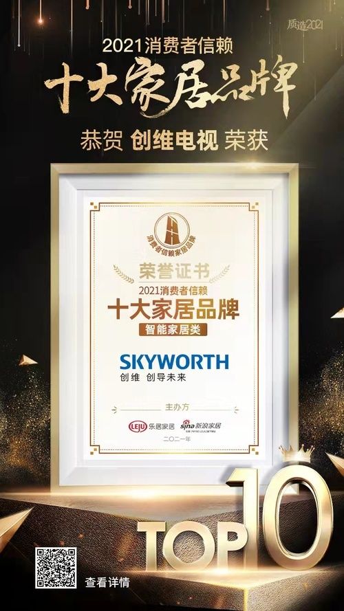 12月18日,由新浪家居主办的“智见·2021中国家居新时代盛典暨金致奖颁奖典礼”于广东佛山举办,其中“2021消费者信赖十大智能家居品牌”榜单也正式揭晓——历经七个月的严格评选,在200余位行业协会领导、资深专家学者、媒体负责人、1000余名设计师及工长组成的专家评审会综合评审下,经过“产品力、创新力、品牌力”三个维度的考量,创维电视凭借突出的综合实力荣誉登榜,再次力证其作为大屏AIoT创导者在智能家居赛道上的主导地位,及在“高端化、科技化、年轻化”的品牌战略持续牵引下,技术、产品协同并进迸发出的增长潜能。