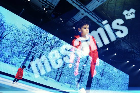 发布会现场,灵动活泼的童模T台走秀燃爆全场,在神秘之门、沉浸式小超模橱窗展示、雪花、森林等场景切换及焕蓝主题灯光映照下,萌娃们各具特色的演绎展现了摩米童装的亮丽穿搭风采。整场秀节奏紧凑,动感十足,台下掌声不断。