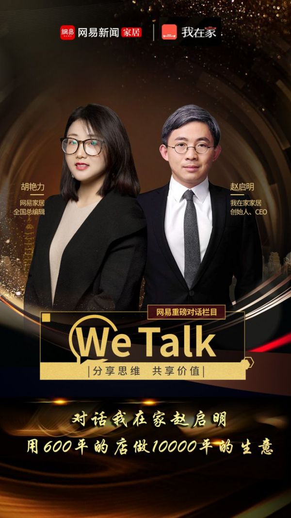 在不断的创新和变革中,“我在家”在哪些方面进行了调整?在新零售的大趋势下,“我在家”的优势又在那里?本期网易家居重磅栏目《WE TALK》, 网易家居胡艳力对话“我在家”创始人、CEO赵启明,以深度剖析揭秘“我在家”的模式与优势!
