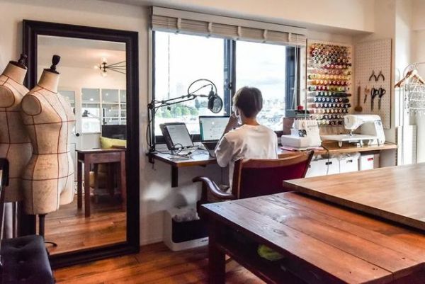 西侧则佈置一个带缝纫机的工作区