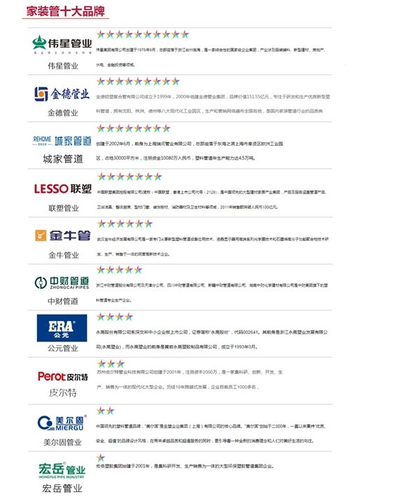 2020中水管十大一线品牌排行榜,华亚管、公元、伟星入榜