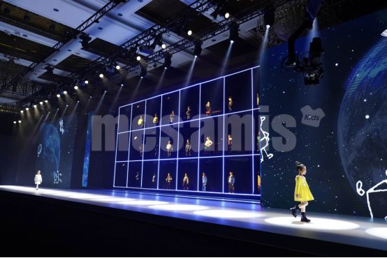 发布会现场,灵动活泼的童模T台走秀燃爆全场,在神秘之门、沉浸式小超模橱窗展示、雪花、森林等场景切换及焕蓝主题灯光映照下,萌娃们各具特色的演绎展现了摩米童装的亮丽穿搭风采。整场秀节奏紧凑,动感十足,台下掌声不断。