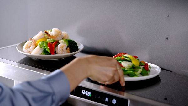 先出锅的西兰花炒虾仁等热菜可以先放置在恒温暖架上,宽裕暖架可以设定为65 ℃恒定保温,根据餐盘大小可以放置放置3-4盘菜。等待所有菜品都做好,开饭时再统一端上餐桌,这时候全桌菜都是热气腾腾的,冬日烹饪可谓得心应手。