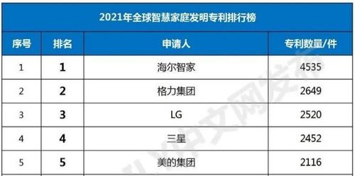 全球智慧家庭发明专利排行榜,海尔智家登顶