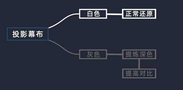 投影仪是利用光的漫反射来进入观看者的眼睛中,一般来说在没有幕布前,大家使用的是白墙,考虑到墙面不是很平整的因素,光辉反射到四面八方,不能集中导致进入人眼的反射光减少,在视觉上产生画面不够亮且画面效果不够好的错觉。
