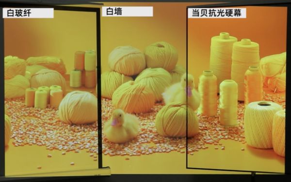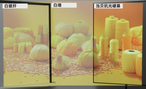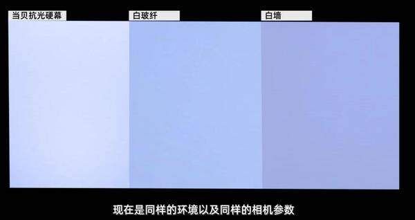 · 幕布在白墙、白玻纤幕布、抗光幕布(当贝抗光硬幕)上的表现
