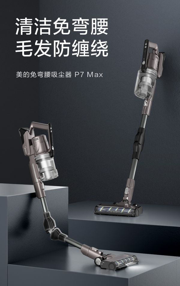 美的P7 MAX是一款主打免弯腰卖点的吸拖吸尘器,机身采用人体工学弯折设计,不用弯腰即可打扫低矮空间。它采用前吸后拖的清洁方案,后置清洁布覆盖拖地,拖地水箱为一键踩踏式出水,相比自动出水的产品,用户无法均匀控制它的出水量,且拖地方式在处理顽固污渍时稍显吃力。美的P7 MAX最大功率150AW,配备电动除螨刷、电动软绒刷等多种刷头,续航可达70分钟。