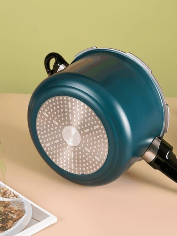 首先是用料,世纪不粘压力锅采用食品级陶瓷不沾涂层,这种材质耐高温、耐腐蚀、韧性高、安全性好。三层复合锅底,不挑灶具,明火、电磁炉等都适用,而且导热快且均匀。