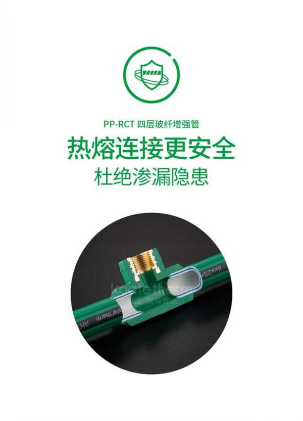 koate®therm德国阔特PP-RCT 四层玻纤增强管,管件与管材均采用相同的北欧化工PPR原料,绿色环保、无添加无污染、卫生条件达到食品安全标准,热熔连接无刺激气味,确保家庭用水健康。