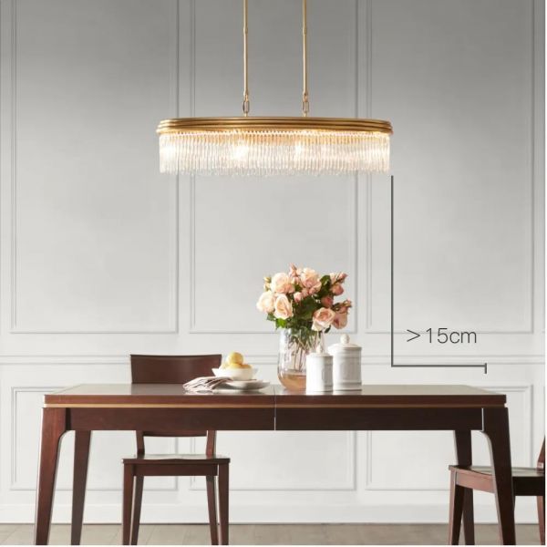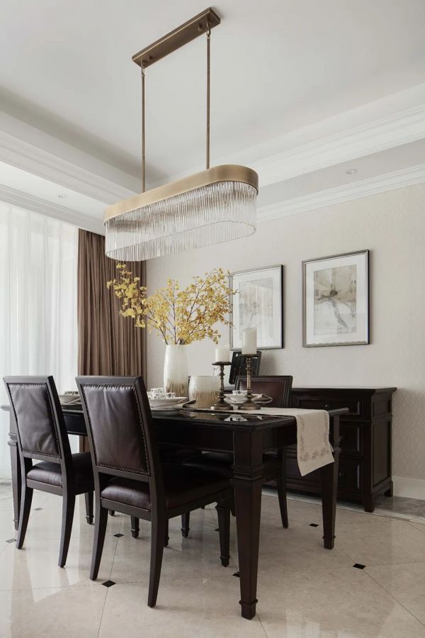 所以我们建议餐厅吊灯的选择,需要根据餐桌的款式、风格进行选择。最保险的方式:长餐桌选长灯,圆餐桌选圆灯。