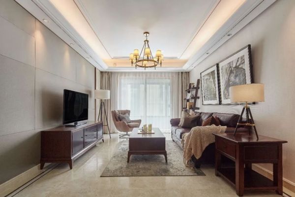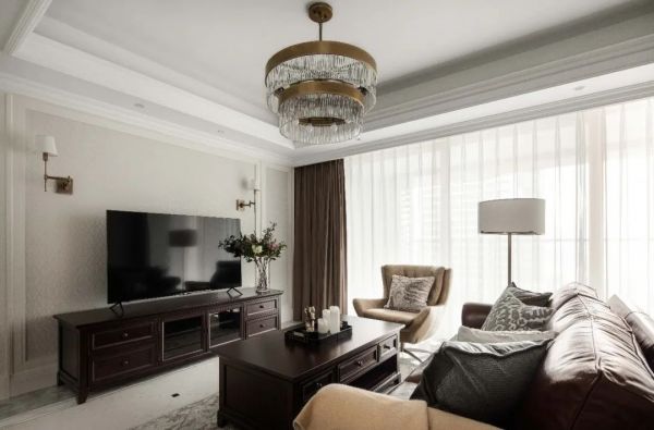 客厅的吊灯,是整个客厅的主要灯光光源,同时也是客厅的辅助装饰品,一般放置在主家具组的正上方,均匀地扩散环境光。客厅的吊灯相比于离地高度,更需要考虑它和房间的相对尺寸。
