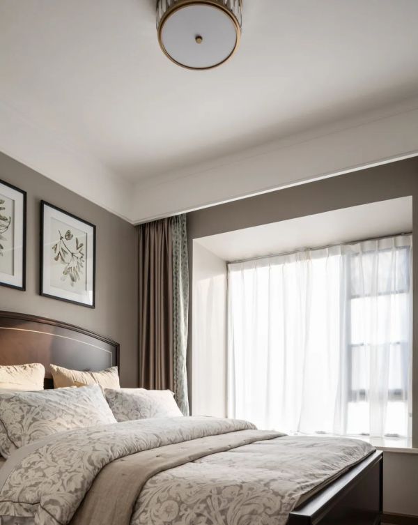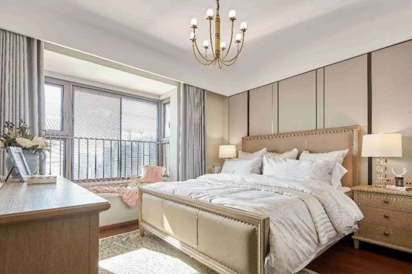 卧室也需要几种不同的光源,可以用一盏主吊灯营造舒适放松的氛围感。