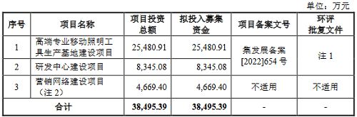 根据招股书披露,东昂科技本次申请在创业板上市,拟公开发行新股不超过5000万股,计划融资3.85亿元,用于高端专业移动照明工具生产基地建设项目、研发中心建设项目及营销网络建设项目。