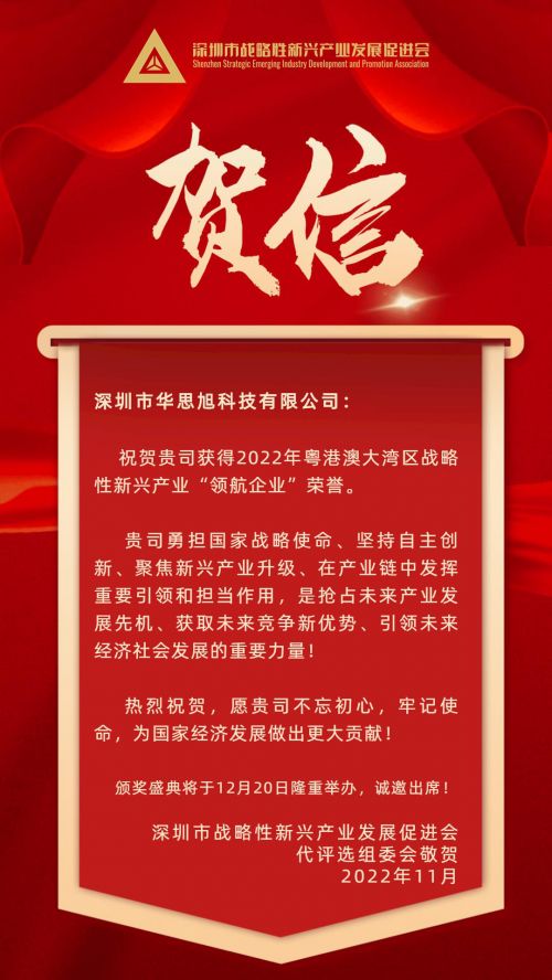 华思旭获评2022年粤港澳大湾区战略性新兴产业大会“领航企业”