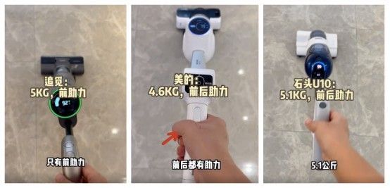 洗地机很大比例的用户是女性,而满装的机器足有5、6斤重,传统洗地机还多只有向前助力,这就导致很多用户因为无法承受机器之重而选择退货。但美的很好的解决了这个问题,G6T的双向助力系统通过手柄传感器来帮助控制滚轮转向,达成了前后双向助力,做到真正省力省劲。