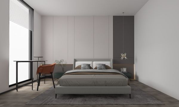 将沉稳低调的灰色融于空间,重塑出淡然恬静的睡眠氛围。CBD家居·黑金 | HZ030软床,折耳式靠包撞色搭配,灵动时尚,增强倚靠舒适度,齐边框床尾简洁整洁,呈现微妙的视觉艺术,优雅自然。