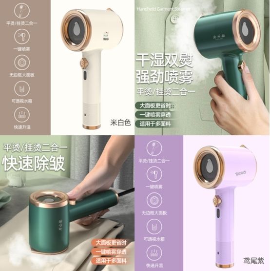这四款手持熨烫机都是吹风机式结构设计,产品重量轻、体积小,手柄粗细适中,持握手感好,拿得稳不容易手累滑落,美观好上手。