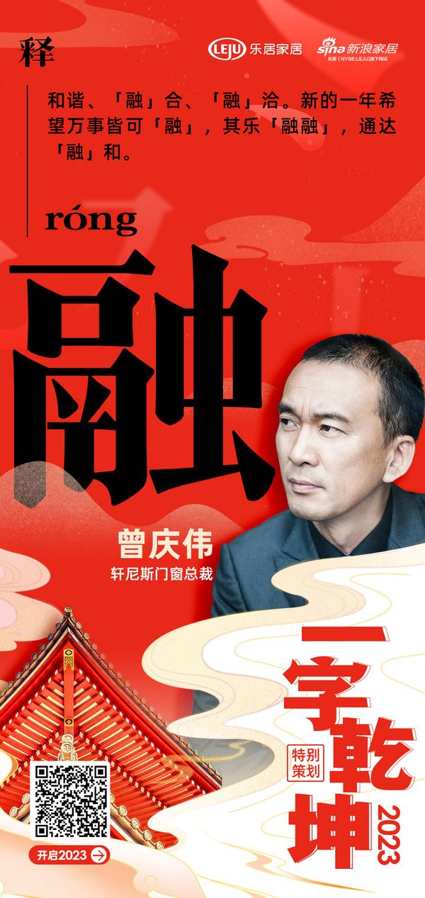 兔年开年之际,新浪家居诚挚推出“2023 一字乾坤”活动。本活动齐聚家居10大行业,百位企业家,用一个汉字展望自己心中的“2023”。通过汉字之美传递中国家居人初心依旧,奋发向上,自强不息,创新不辍的精神面貌。