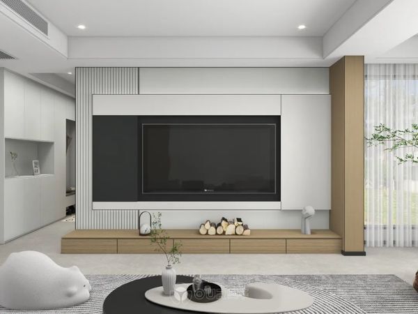 一打开家门,目光便被客厅所吸引,几尺空间延伸变动,整墙的白与原木,漫于身后,材质、颜色契合有度。