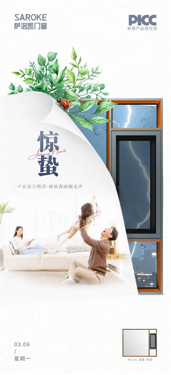 惊蛰一到春雷响,万物萌动春来到,大地气温随之回升,雨水也开始增多。品质门窗的层层防护,隔绝外在噪音,防风防潮,让每家每户安心享受室内生活,欣赏窗外无限春光。