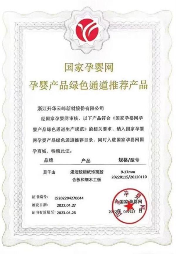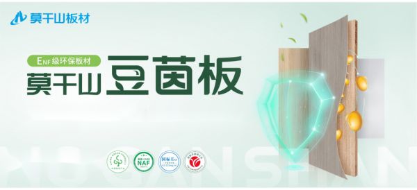 2018年,在莫干山板材的不懈努力下,成功推出ENF级环保板材产品——豆茵板,该产品基材通过美国CARB-NAF无醛豁免认证,将无醛添加的“豆胶”融入到板材的加工工艺中,全程采用无醛工艺绿色生产,产品达到ENF级环保标准。豆茵板一经问世,便成为市场新宠,2022年经欧睿认证莫干山ENF级环保板材全国销量领先,莫干山板材已成为消费者心中的环保板材代表。