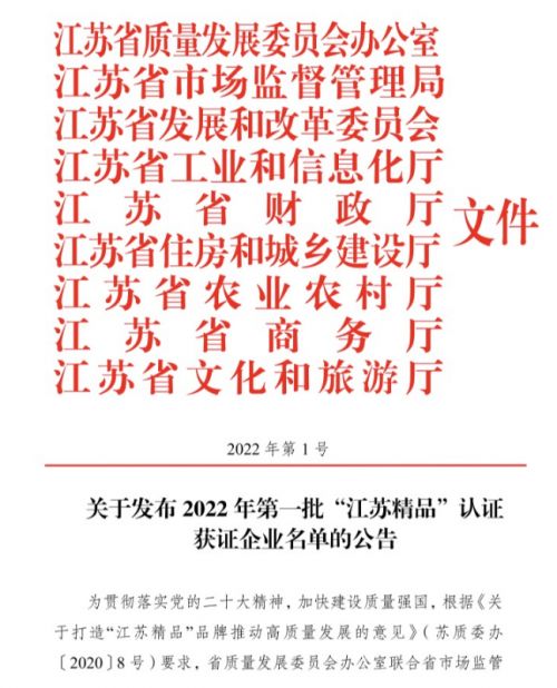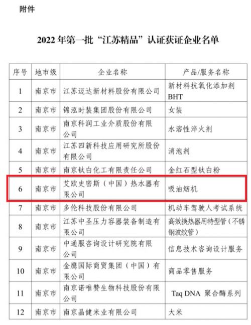 日前,江苏省市场监督管理局、江苏省发展和改革委员会等9大厅级机构联合授权的第一批“江苏精品”认证发布名单, A. O.史密斯「瀞」油烟机上榜“江苏精品”。