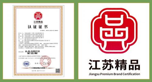 江苏精品”是江苏省委、省政府大力实施品牌发展战略、建设质量强省的一项重要举措。获得“江苏精品”认定的产品为具有国际先进(国内领先)水平,创新能力强、品质卓越、 品牌效应好、经济和社会效益显著的自主品牌产品。由江苏省委、省政府牵头组织依据国际通行认证标准和流程严格评选,是高品质、高水平的代名词,含金量极高。A. O.史密斯「瀞」油烟机荣获“江苏精品”认证既是对产品质量的肯定,也是对A.O.史密斯创新与研发实力的认可。