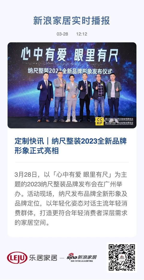 新浪家居定制频道讯 3月28日,以「心中有爱 眼里有尺」为主题的2023纳尺整装品牌发布会在广州举办。活动现场,纳尺发布品牌全新形象及品牌定位,以年轻化姿态对话主流年轻消费群体,打造更符合年轻消费者深层需求的家居空间。