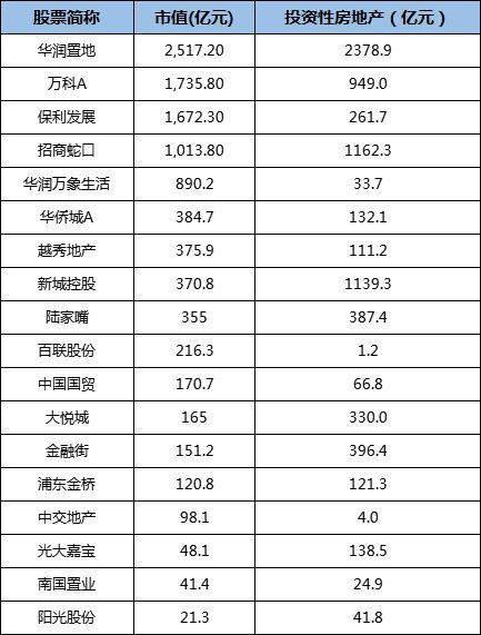 注:市值为20230329数据;投资性房地产数值为截至2022年三季度末数据
