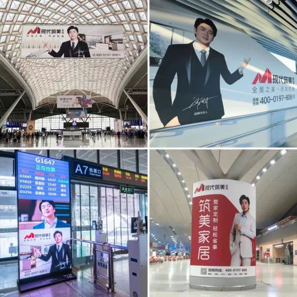 筑美家居在全国一线城市高铁站广告投放,覆盖全国6亿人次;广州白云机场T2航站楼廊桥广告,48个固定廊桥,112个广告点位,覆盖全国3千万人次;国内主流机场、高铁站作为品牌战略布局的重要载体,全面提升筑美品牌的行业影响力,大力促进品牌的建设,为终端市场赋能引流。