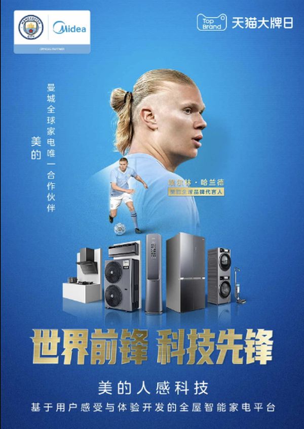 因此,从体育球星竞技、品牌、经济等角度综合考量,哈兰德作为超巨,有粉丝基础,曝光度高,便于品牌在后续宣传形成破圈效应。同时球员本人自带“冠军光环”,这也与美的追求在多个品类中夺冠的目标协同一致。