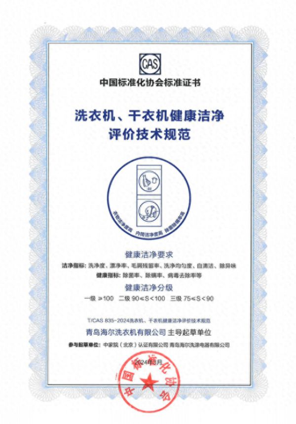 3月13日,全球首个《洗衣机、干衣机健康洁净评价技术规范》(以下简称《健康洁净标准》)正式发布。据了解,该标准由海尔洗衣机主导起草,并联合中标协共同发布,标准从洗净指标和健康指标两大角度对洗衣机产品进行“健康洁净分级”,从而建立了更为立体的洁净标准评价体系。