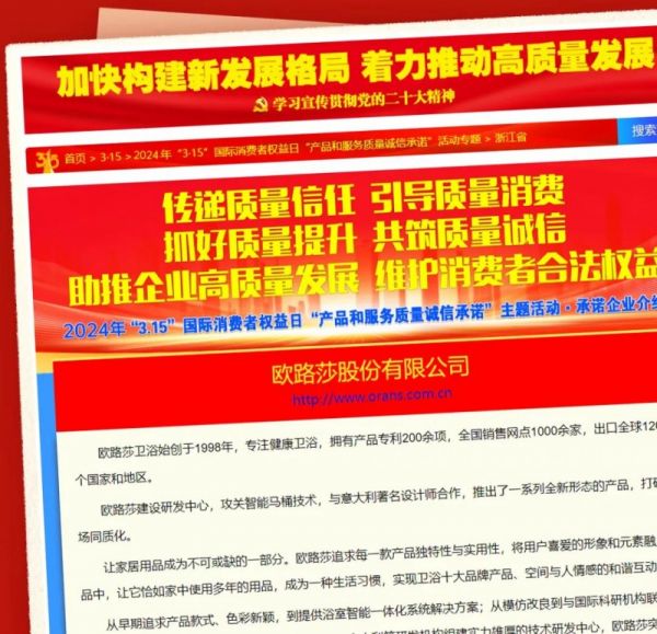 质敬3·15 欧路莎卫浴荣膺四项质量大奖