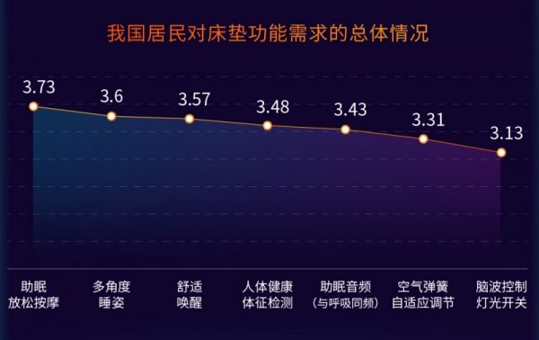 为了改善睡眠质量,越来越多的人使用助眠产品,不少消费者期待愈发成熟的人工智能应用能够帮助他们改善睡眠。调查显示,家居类助眠产品比如床垫、助眠枕等需求最大,其次是睡眠环境类产品、睡眠保健类产品,而更多消费者对于智能床垫的放松按摩、多角度睡姿、舒适唤醒等功能需求最为迫切。