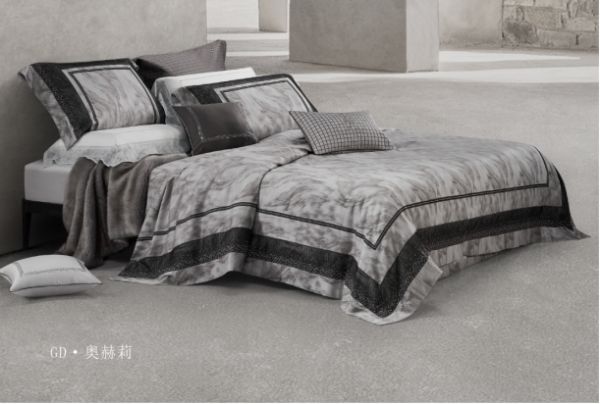 两款联名床品各具特色,却共同诠释着 “高定级舒适” 的定义。水星GD・星斓寐影选用优质长绒棉,搭配 100S 贡缎工艺,触感细腻如云朵,轻盈顺滑不压身。设计师采用 “先染后织” 的色织提花工艺,让织物上的纹理层次更立体鲜活,仿佛将夜空中跃动的星光织入其中,铺在床上便自带浪漫遐想,适合偏爱温柔氛围的旅居者。